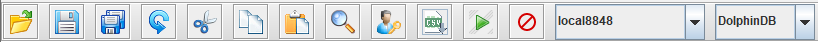The toolbar provides a convenient way to access commonly-used functionalities of the menu bar. On the right of the toolbar is a dropdown window to switch between DolphinDB servers.