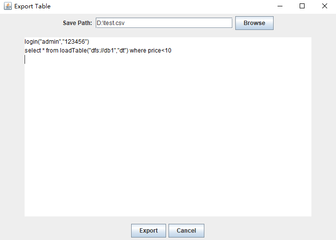 Specify the export path and the SQL query to get the required data, and then click export.