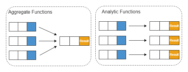 An analytic function (window function) performs an aggregate-like operation over a particular window (group of rows) but returns a single result for each row. OVER clause is commonly used with analytic functions to define that window.