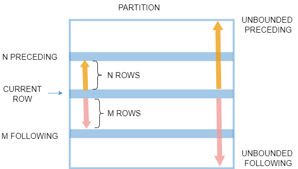 ROWS | RANGE n PRECEDINGis equal toROWS | RANGE BETWEEN n PRECEDING AND CURRENT ROW. -