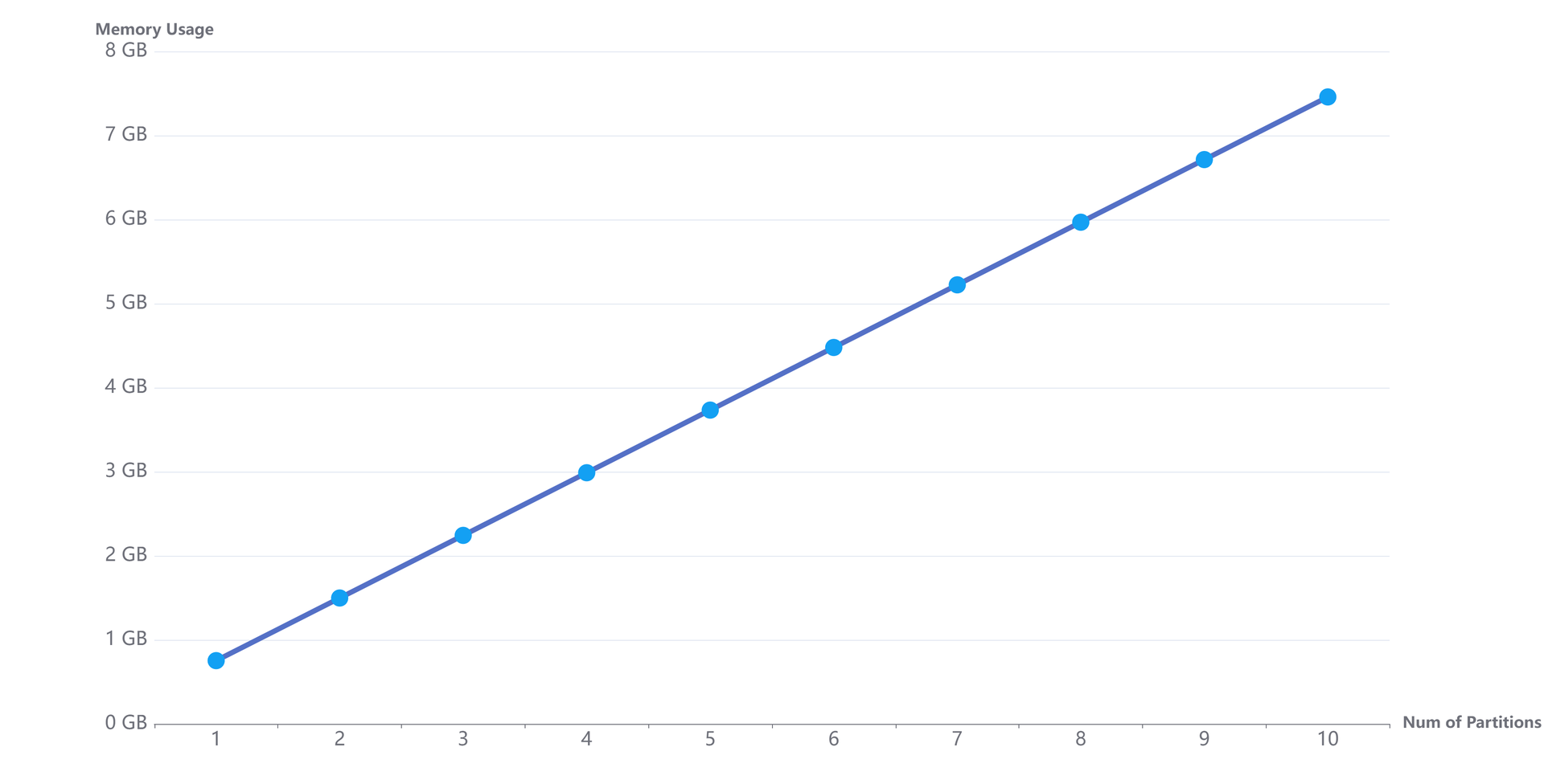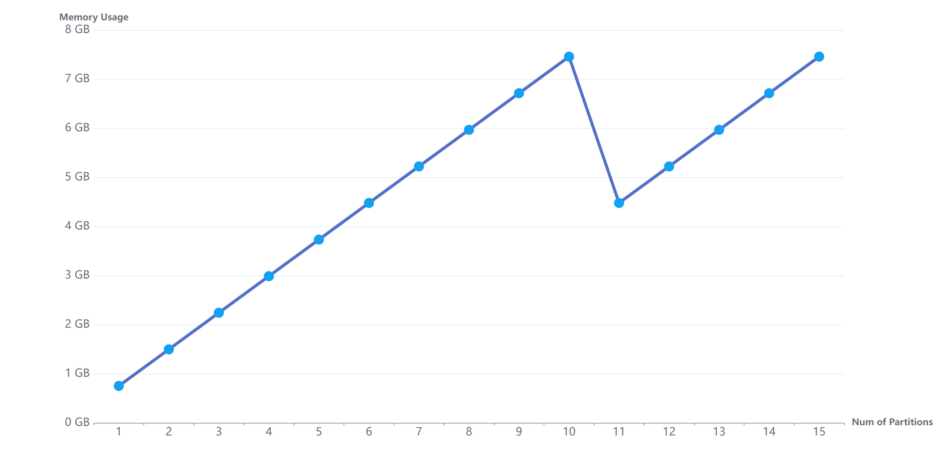 }The memory usage increases with the loading of each partition:
