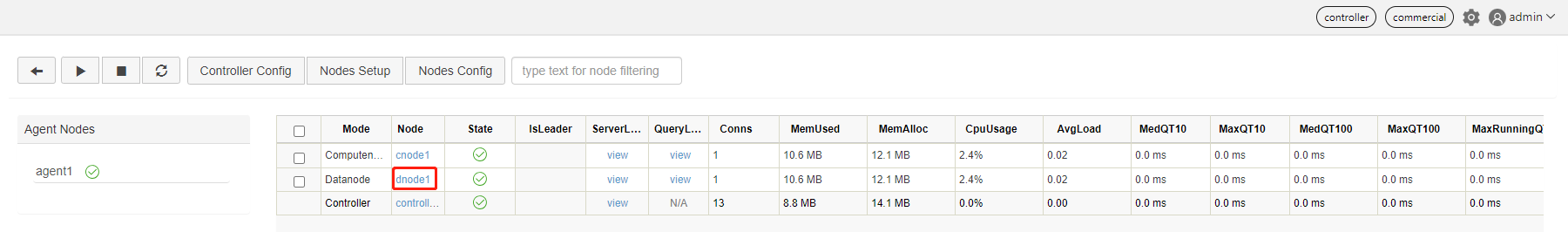 Data nodes can be used for data storage, queries and computation. The following example shows how to create databases and write data on data nodes. First, open the web interface of the Controller, and click on the corresponding Data node to open its Shell interface: