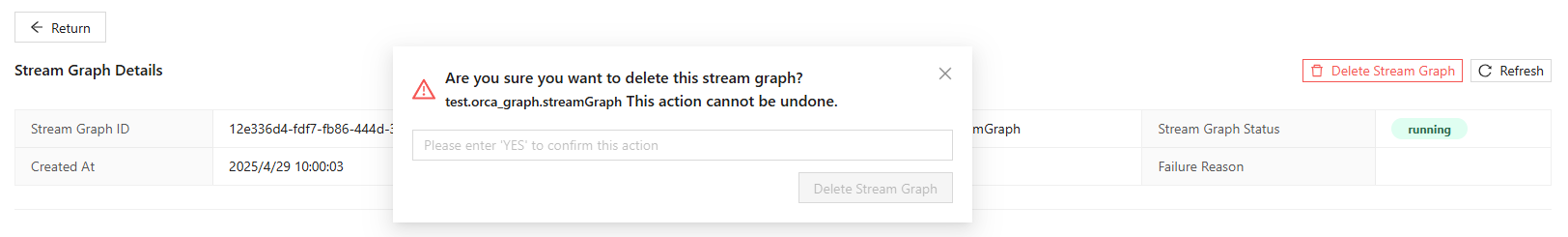 Click Delete Stream Graph to delete it. Enter “YES” in the confirmation dialog and click Delete Stream Graph to finish.