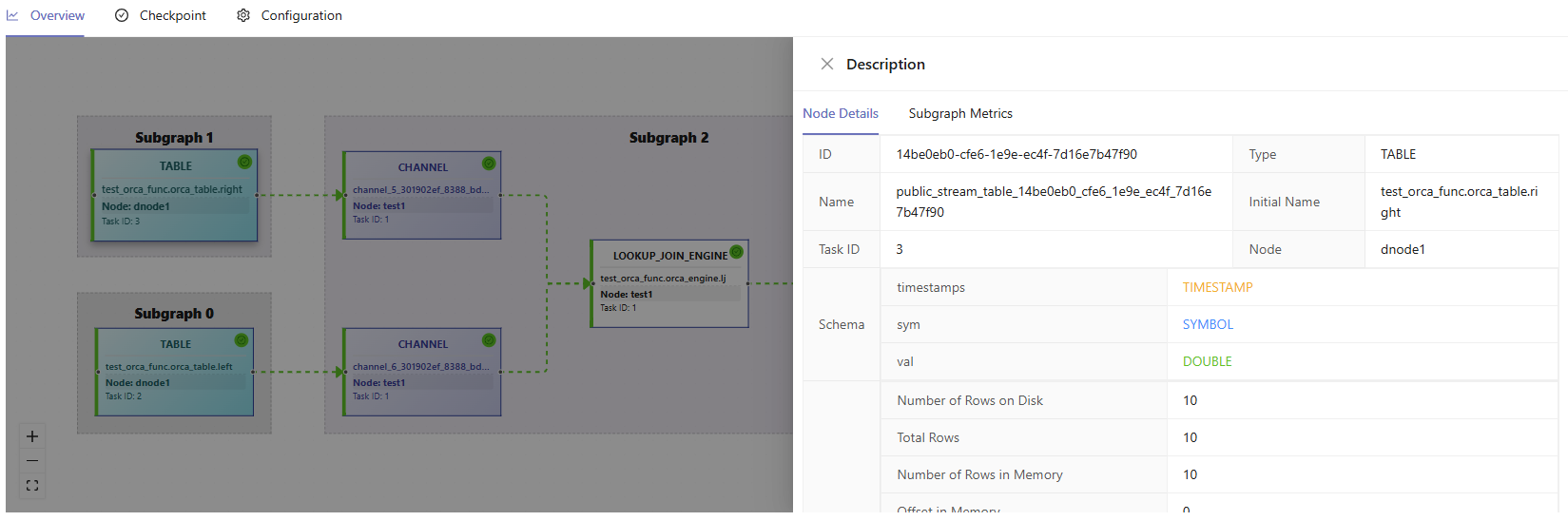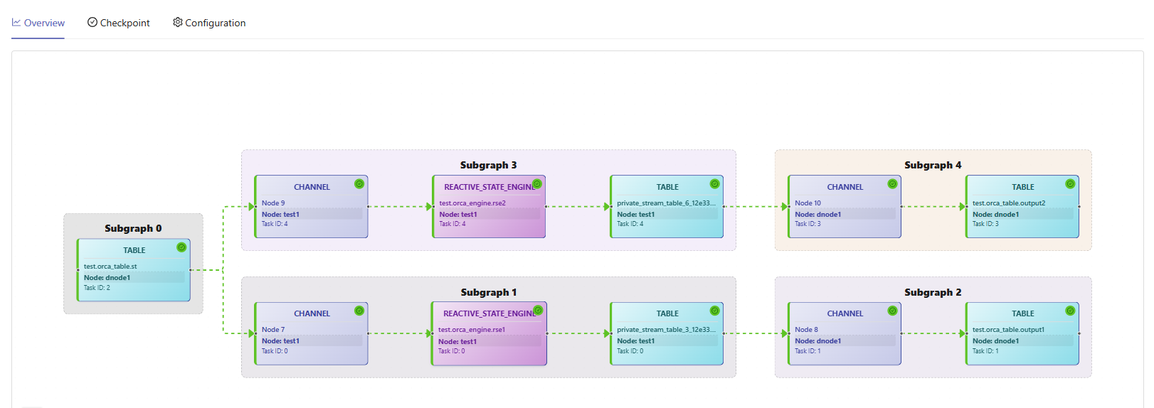 Users can also view the structure and status of the stream graph on its details page, including three tabs: Overview, Checkpoint, and Configuration.