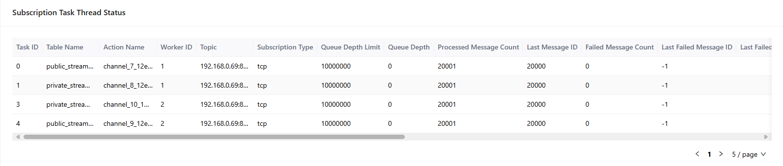 Scroll down to the bottom. This table lists all subscription task threads and their statuses.