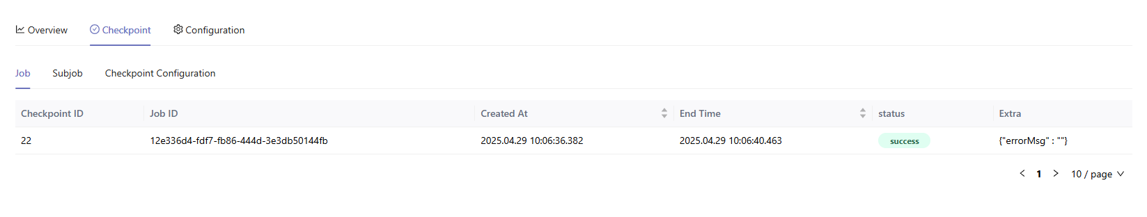 Through this tab, users can view checkpoint details of jobs and sub-jobs in the stream graph.