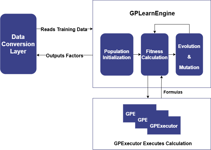 Shark GPLearn consists of two main modules: GPLearnEngine and GPExecutor. Its basic architecture is shown below: