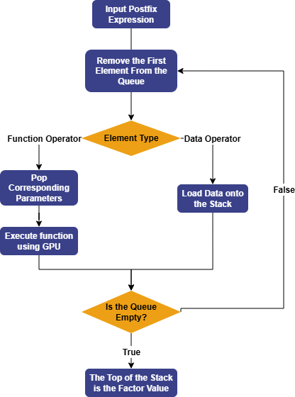 Subsequently, GPExecutor will traverse the execution queue in order. For data operators, GPExecutor will load the corresponding data onto the stack; for function operators, it will pop the appropriate parameters from the stack based on the function's arguments, then use the GPU to execute the corresponding function, and push the final result back onto the stack. Eventually, the elements in the stack represent the factor values. Once the factor values are obtained, GPExecutor will call the fitness function and calculate the fitness with the predicted data.