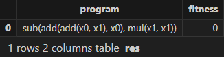 res = engine.gpFit(1) // Result table of Shark GPLearn