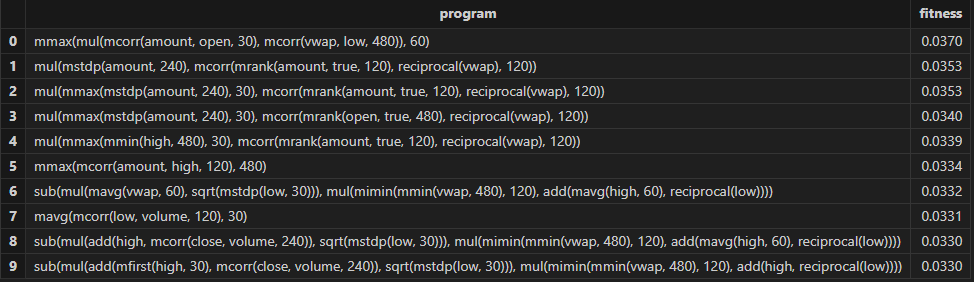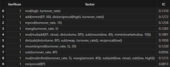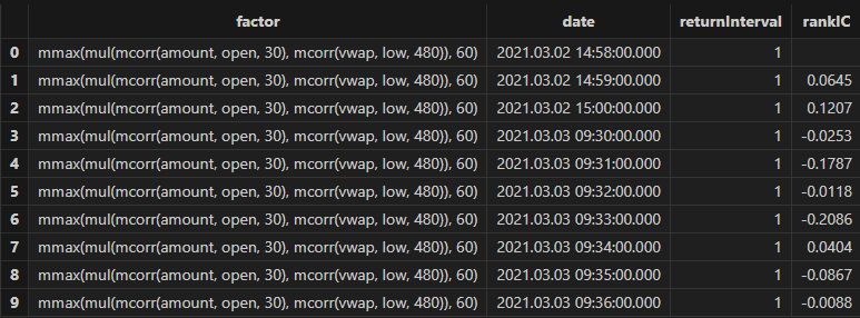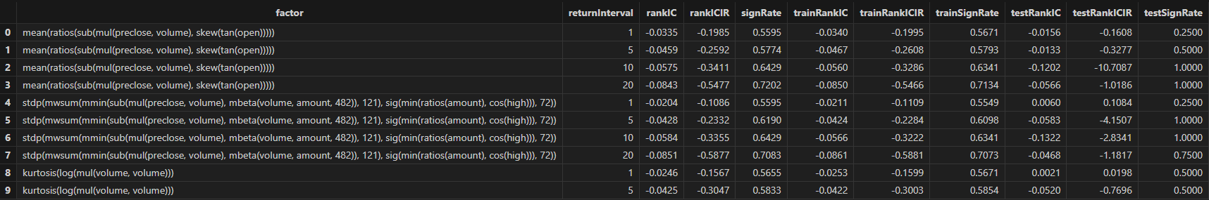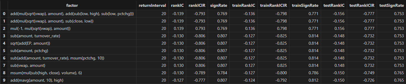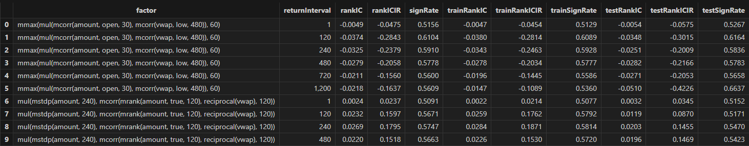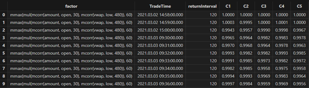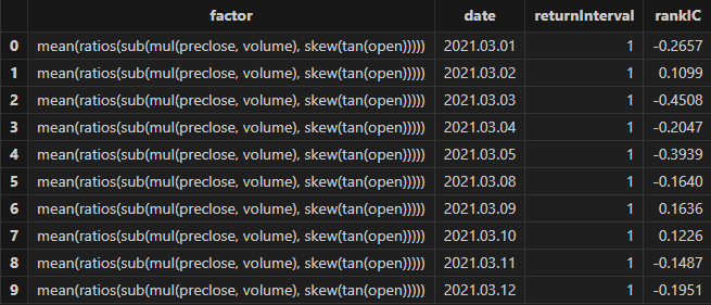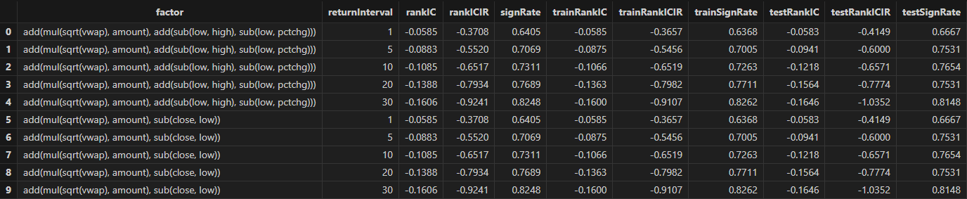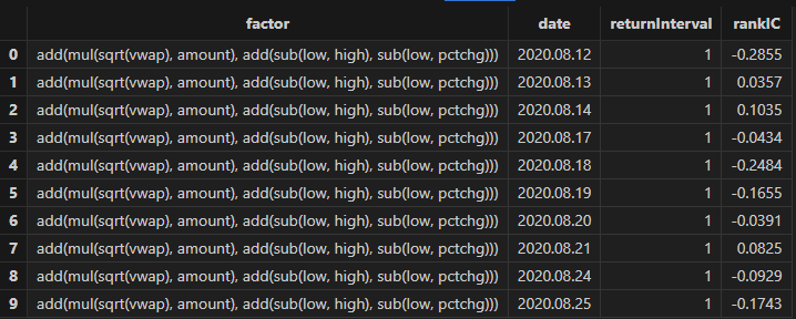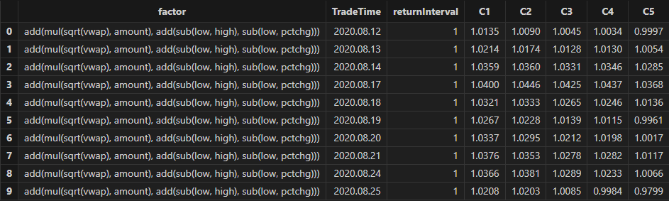 After running, factor formulas can be obtained, as shown in the figure below:
