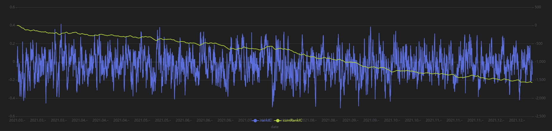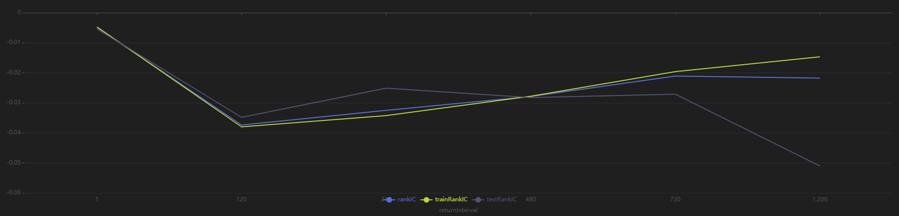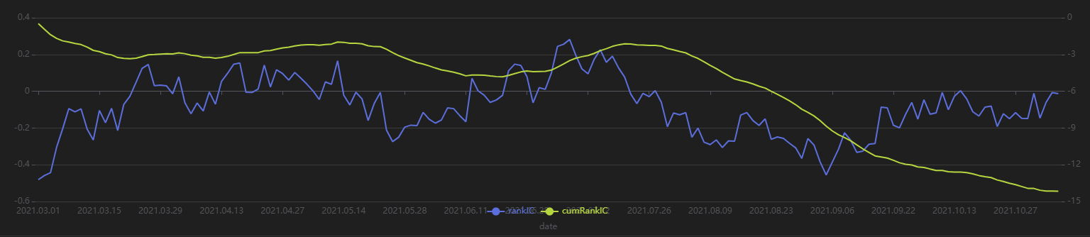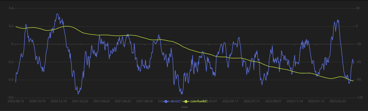 Stratified backtest returns: Top group < Middle group < Bottom group, and the RankIC remains negative.