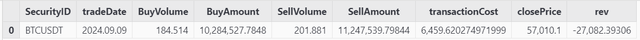 As can be seen from dailyReport, 184 BTC were bought and 201 BTC sold, yielding a net loss of $27,082.04 and transaction fees totaling $6,489.60.