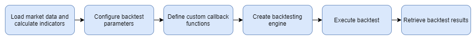 The process of DolphinDB's backtesting engine is shown in Figure 2.2, including six steps. This section will use a general case to introduce how to implement the two types of backtesting modes described above.