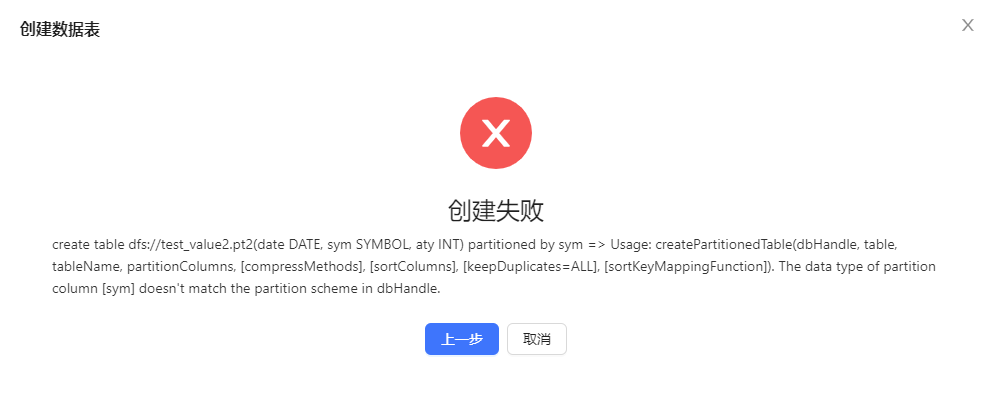 若创建失败,则出现下图,并提示失败原因: