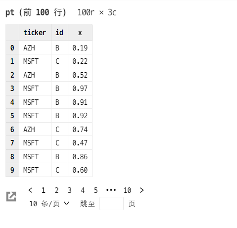 点击数据表变量 pt,在数据浏览器中会展示该表数据。