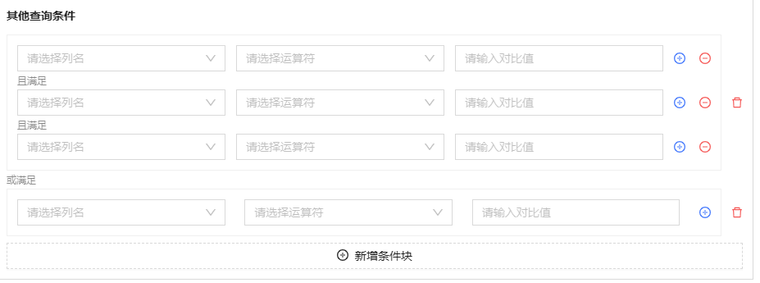 如图 15 所示,用户可单击图标,增加条件块。新增条件块与已增条件块为“或”的逻辑关系。