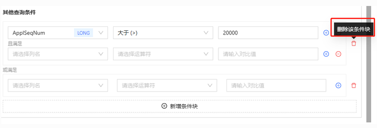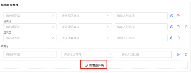 条件块与条件块间的逻辑关系为“或”,用户可创建一个或多个条件块。