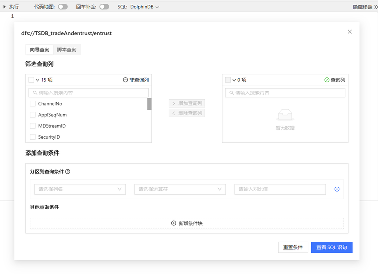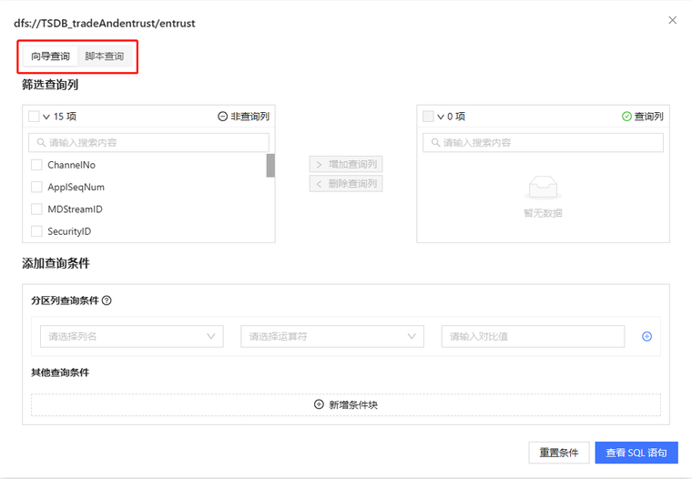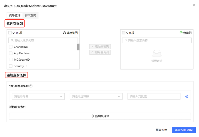 如图 8 所示,该模块主要分为分区列查询条件和其他查询条件,其逻辑关系为“且”。