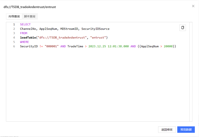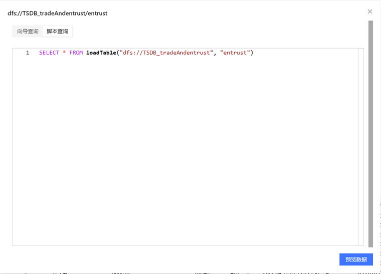 - 脚本查询则是指用户可直接在界面中编写 SQL 脚本,在成功执行后预览并导出数据。