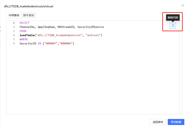 如图 23 所示,用户可点击代码框右上角的符号以复制代码。