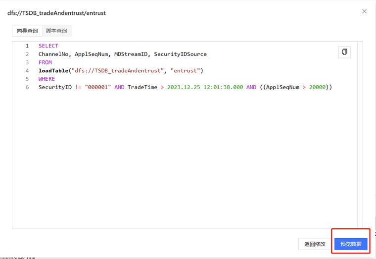 如图 24 所示,在生成的 SQL 语句页面点击“预览数据”。