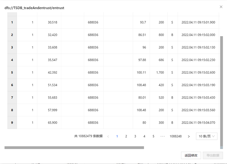 注意:预览数据最多可显示 2000 万行数据。若当前数据总量大于 2000 万行,则页面将显示截断后的数据。