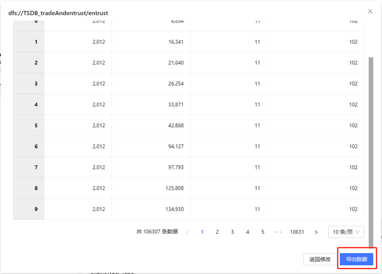 注意:若当前数据总量大于 50 万行或结果为空,则不支持导出数据功能。