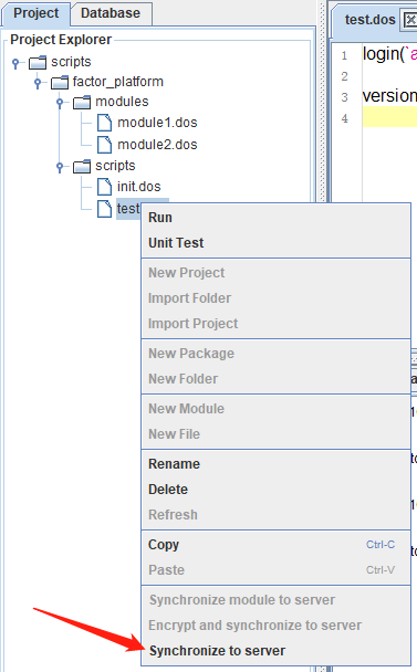 server 不在一个机器上时,可能需要把本地最新编辑的脚本文件同步到远程服务器上。为此,DolphinDB 提供了 Synchronize to