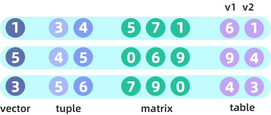 args 可以是一个或多个向量/固定长度数组向量/元组/矩阵或表。args 的每个元素必须具有相同的数据类型,且必须是数组向量支持的类型。