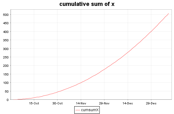 plot(cumsum(x) as cumsumX, 2012.10.01+1..100, "cumulative sum of x")