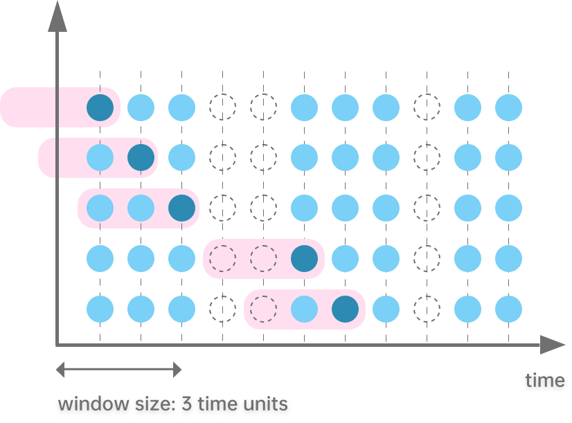 当 T 为整型时,确定的窗口区间为 (Ti - window, Ti ]