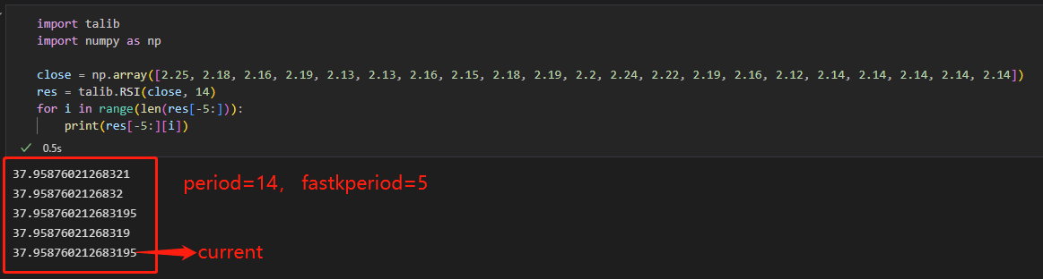 • 为得到有意义的结果,ta 模块中函数的参数 timePeriod 要求至少是2。