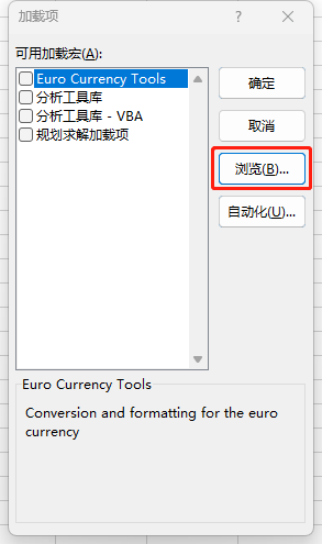 再次打开该选项框,按安装步骤,选择新的加载项。
