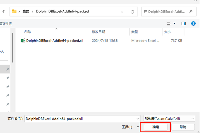 - DolphinDBExcel-AddIn64-packed.xll: 64 位的 Excel 插件。