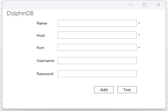在页面中需要输入 Name(标识名)、Host(节点信息)、Port(端口信息)、User Name(用户名)和 Password(密码)。