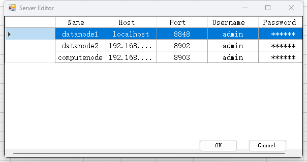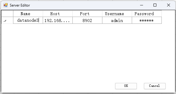 单击“Server”,可以添加新的连接节点、或者修改已配置节点的连接信息。