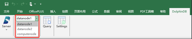 用户可在 Excel 中进行切换节点、数据查询、数据订阅和调用 DolphinDB 函数等操作。