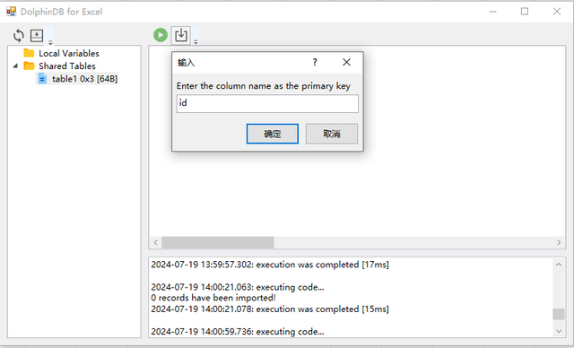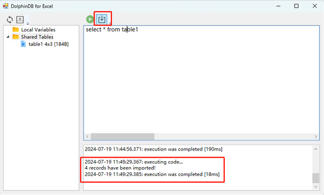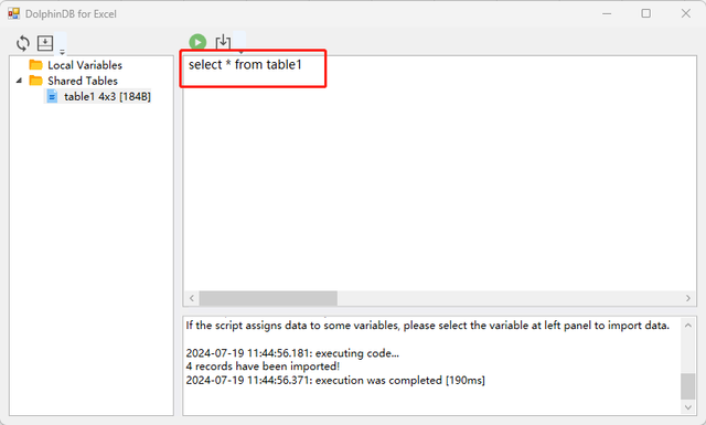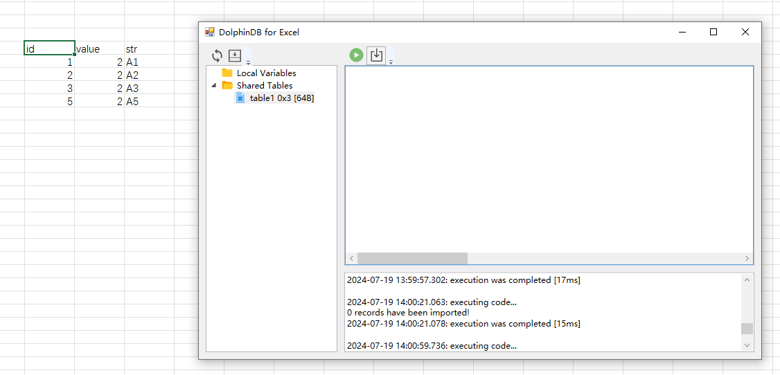 values2,...) 实现。该函数能够在 Excel 表格中远程执行 DolphinDB