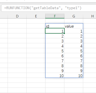 在 Excel 中选择一块表格区域,然后调用函数 =RUNFUNCTION("getTableData",