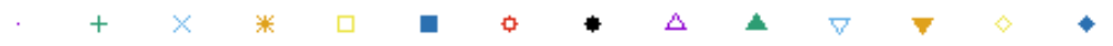 - pointType: 整型标量或向量,表示画点的形状。取值为 0 到 13,对应下图中从左到右的形状。