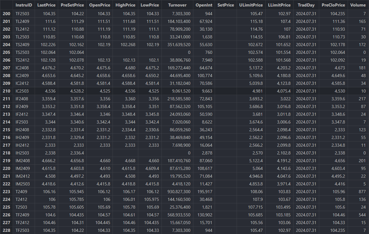 <pre_settlement_price>, <settlement_price>, <open_interest>,
