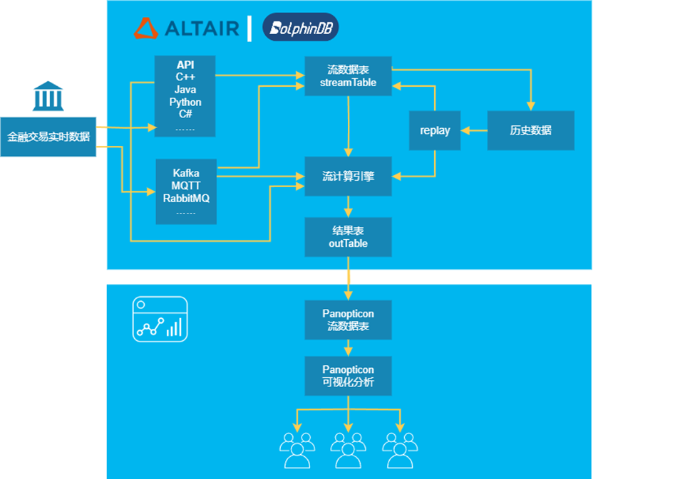 DolphinDB + Panopticon 实时流数据分析流程如下图所示: