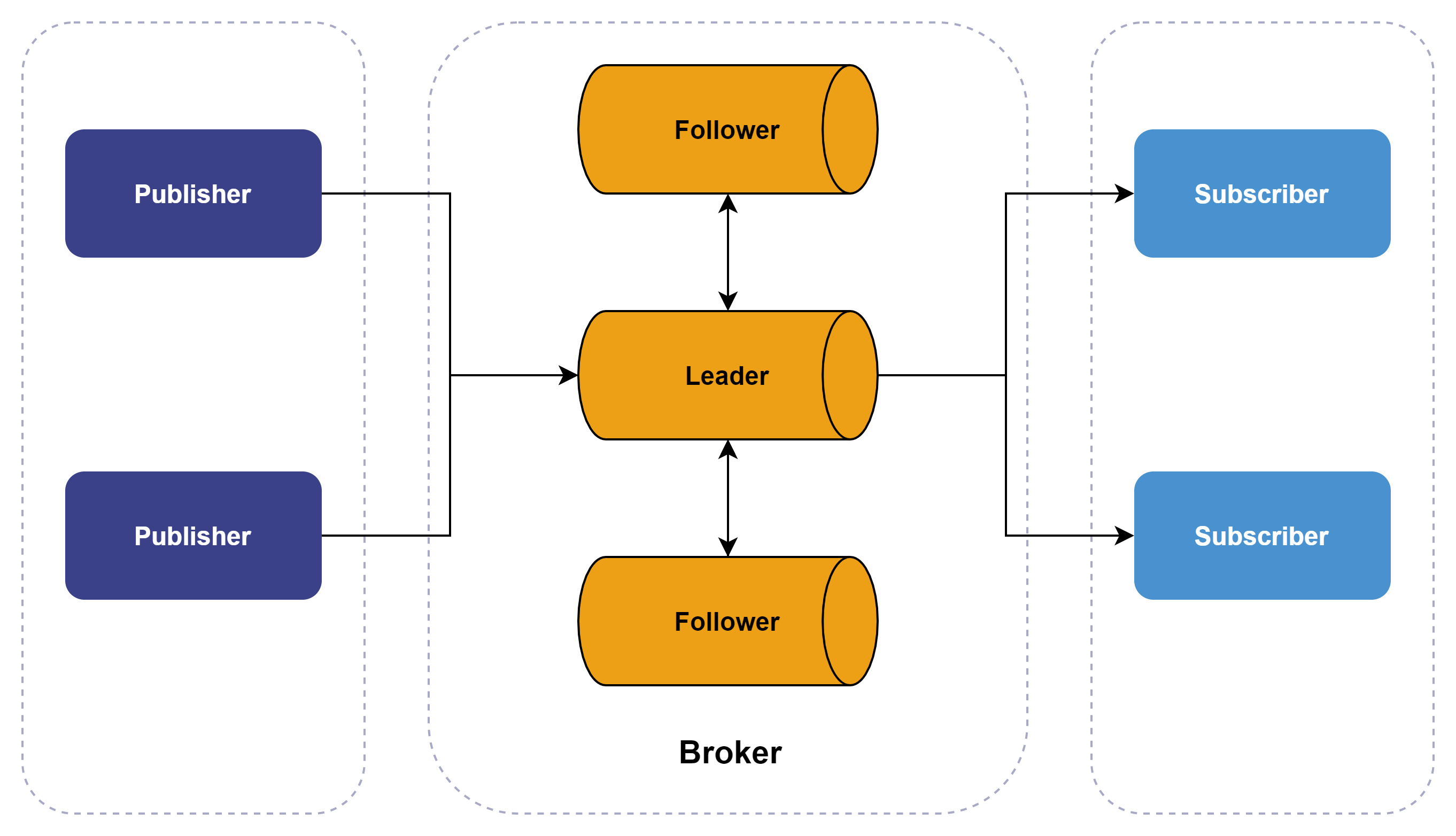 一个发布订阅流数据系统包含三个角色: Publisher(生产者),Broker 和 Subscriber(消费者)。在 DolphinDB 流数据框架中,Broker 由 DolphinDB 的数据节点或计算节点担任,Publisher 和 Subscriber 由 DolphinDB 数据节点、计算节点或第三方 API 程序担任。