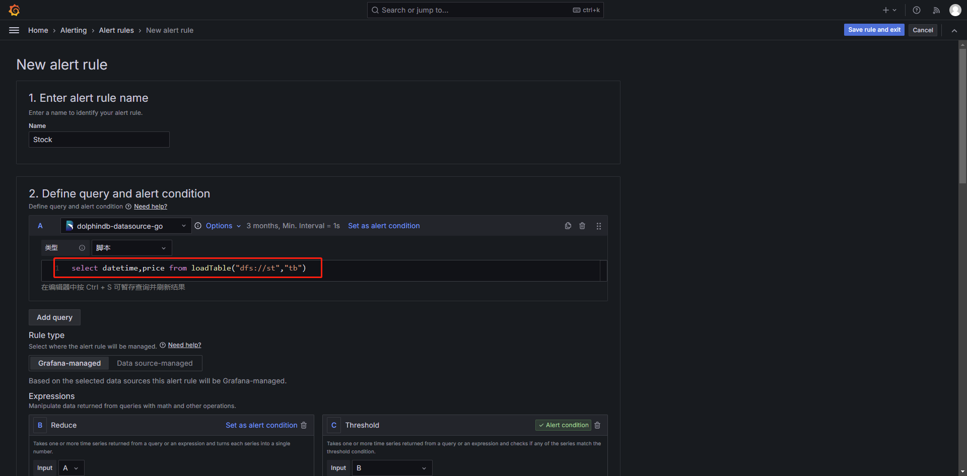 脚本。 - 编写查询脚本,代码的最后一条语句需要返回 table。