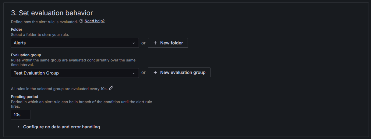 比如设置每 10 秒就查询一次,并且在这种情况持续 10 秒后告警。