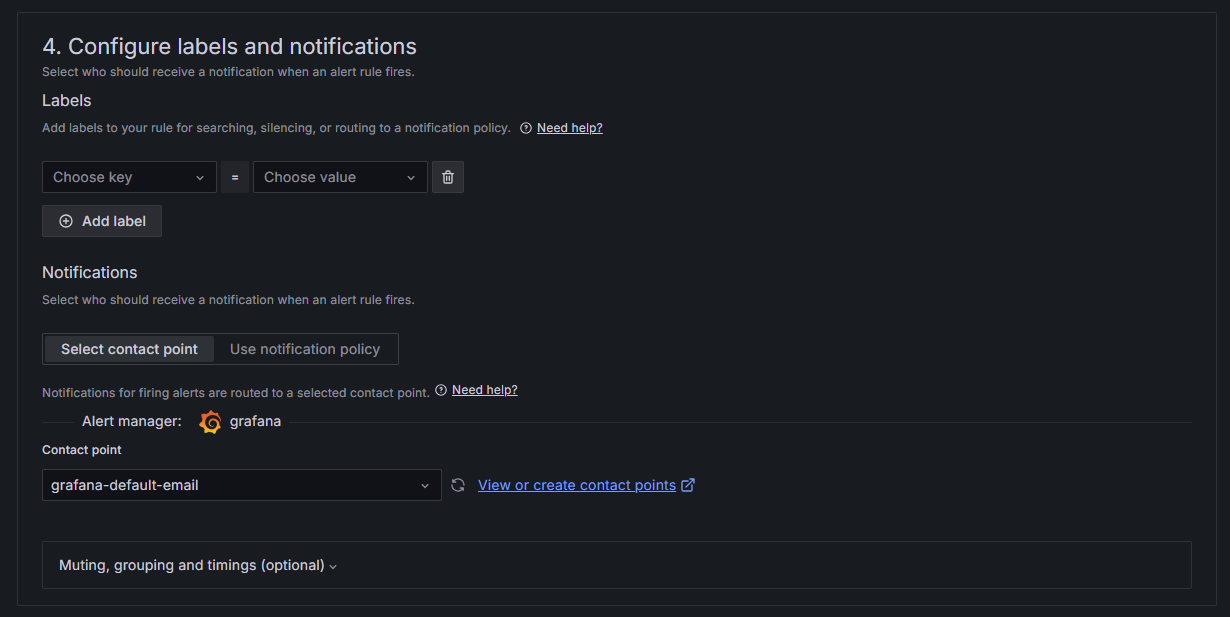 此处设置了发送邮件作为通知方式,Grafana 支持多种通知方式,比如 Slack, Discord, Webhook, Wecom, DingDing 等。