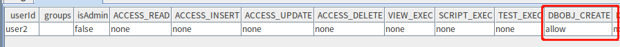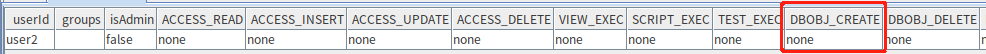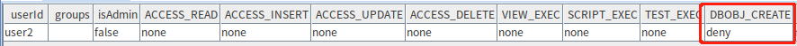 deny(`user2, DBOBJ_CREATE,"*")