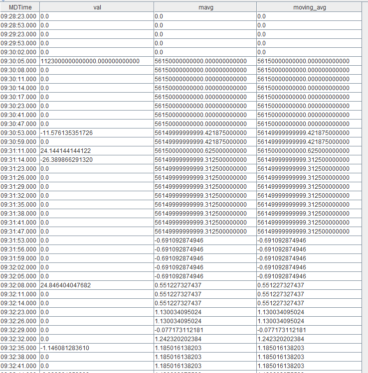 为了避免这种计算误差,我们先将中间计算结果转换为 DECIMAL128 类型,再计算 mavg 和 moving(avg,…):