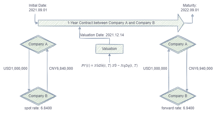 本次外汇掉期估值计算的逻辑,参考中国外汇交易中心2019年4月2日在官网推出的外汇掉期估值服务中的估值算法,即通过掉期曲线计算当日的远端全价汇率折算,并与约定交易的全价汇率生成的现金流轧差得到净值,再用当日的 Shibor3M(Shanghai Interbank Offered Rate) 利率互换收盘曲线进行贴现,最后得到合约净额的贴现值即为合约估值。