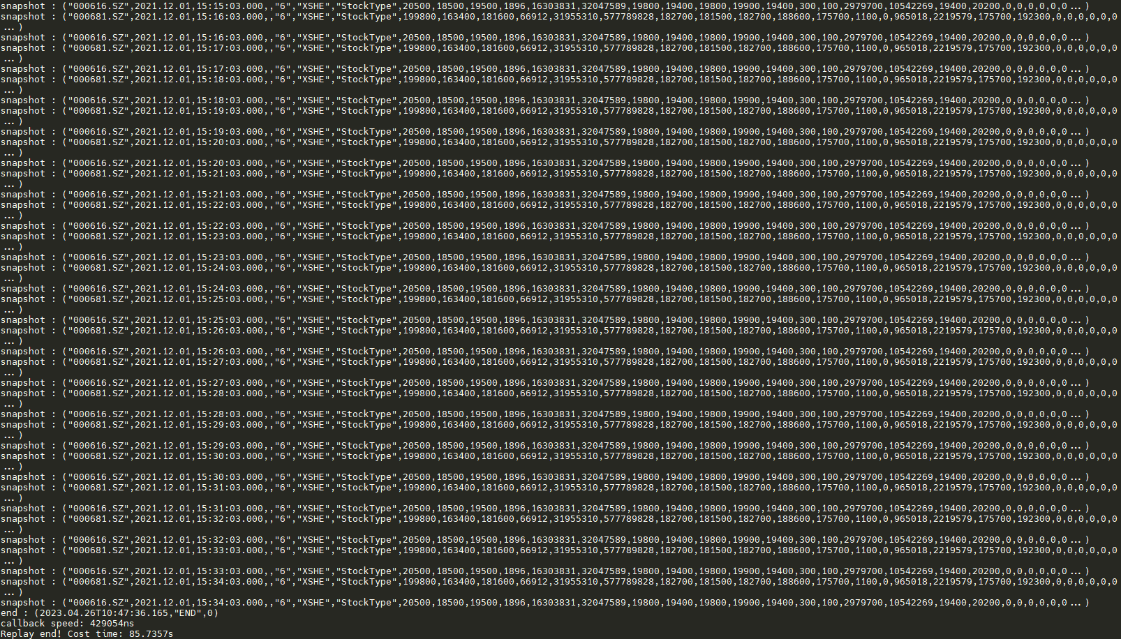 测试方法:选取深交所 50 支交易股票数据,linux 后台启动第四章 C++ API 提交回放程序,提交多天回放任务。